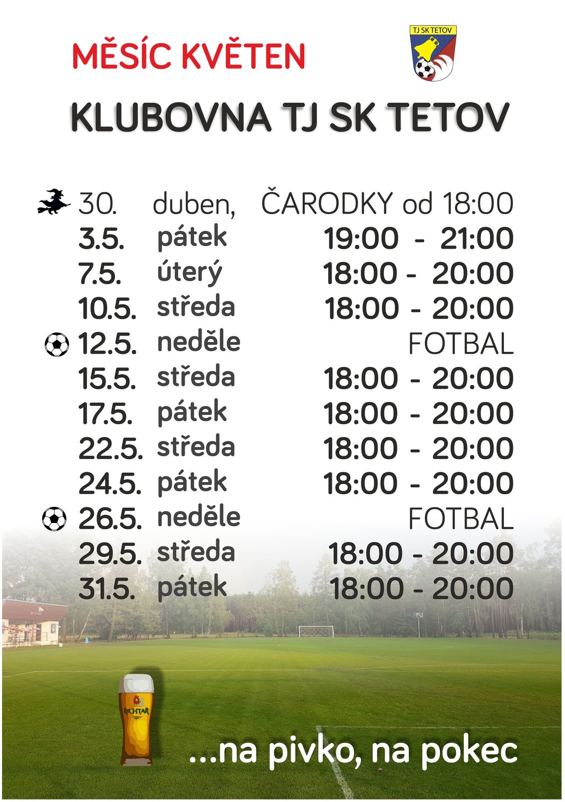 Úvod > Obec > Aktuality > Otevírací doba květen 2024 - klubovna Tetov